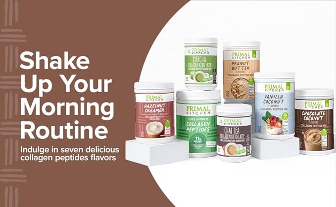 - Vanilla Collagen 20 oz: Boost your collagen intake with the creamy vanilla flavor of our bestselling collagen powder. Primal Kitchen Vanilla Coconut Collagen Fuel Drink Mix contains 11g of collagen peptides per serving for delicious skin, hair, and nail support in every sip. Perfect hot or cold—just scoop, mix, and enjoy!