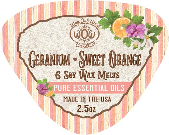 Scented Wax Melts for Wax Warmers - Highly Fragrant Air Freshener - 4 Pack Set of 6 Melt Cubes with Essential Oils - Made in USA by Way Out West Candles (4, Geranium Sweet Orange)