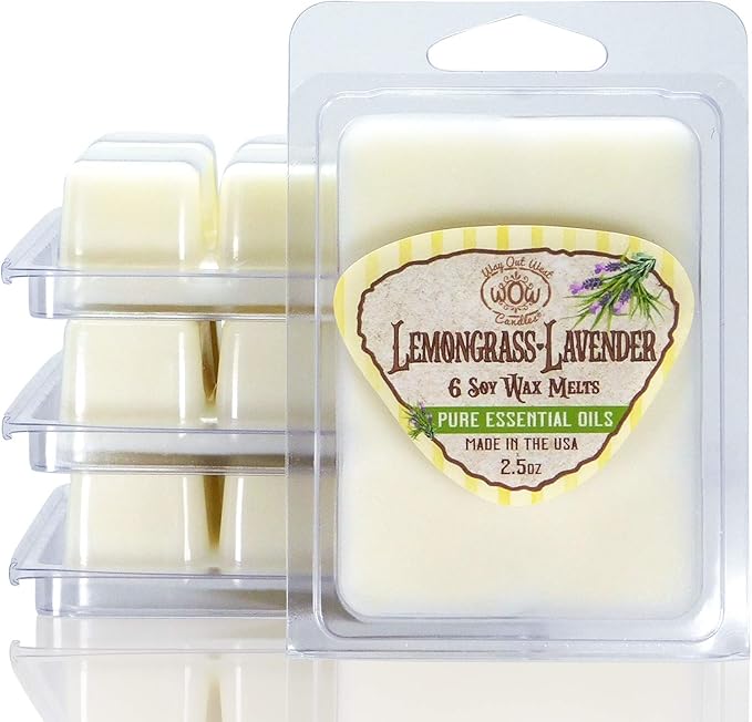 Scented Wax Melts for Wax Warmers - Highly Fragrant Air Freshener - 4 Pack Set of 6 Melt Cubes with Essential Oils - Made in USA by Way Out West Candles (4, Lemongrass-Lavender)
