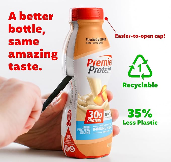 Premier Protein Shake 30g 1g Sugar 24 Vitamins Minerals Nutrients to Support Immune Health, Peaches & Cream, 11.5 Fl Oz (Pack of 12), Total 138 Fl Oz