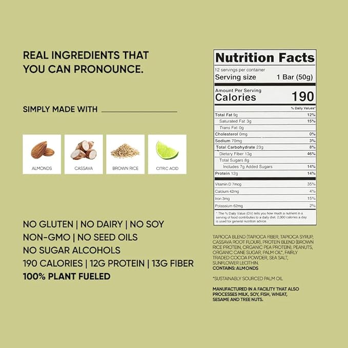 - ENJOY GUILT-FREE INDULGENCE: Savor our Whipped for Key Lime Protein Bars with real, pronounceable ingredients: Almonds, Cassava, Brown Rice, and Citric Acid. Zero gluten, dairy, soy, GMOs, and sugar alcohols. Packed with 12g of lean, plant protein and only 190 calories, they offer indulgence without compromise, enriched with 13g of fiber and essential vitamins like D and Calcium for a nutritious boost. Enjoy plant-powered, guilt free pleasure!