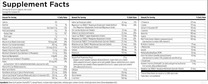 - Comprehensive Cleanse Drink Mix - Stay satisfied while cleansing with this powerful combination of bone broth protein, nutrients, antioxidants, herbs (milk thistle & more), fiber, and a fruit / vegetable blend to support detoxification.*
