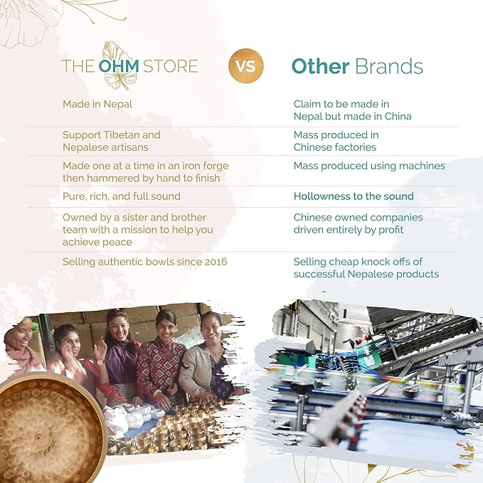 - AUTHENTIC HAND HAMMERED TIBETAN SINGING BOWL SET — This high-quality handcrafted meditation bowl set includes a wooden striker and hand sewn cushion. It is hand hammered in the Himalayan Foothills by Nepalese artisans to be as unique as you are and to create an ambience for emotional calming and healing.