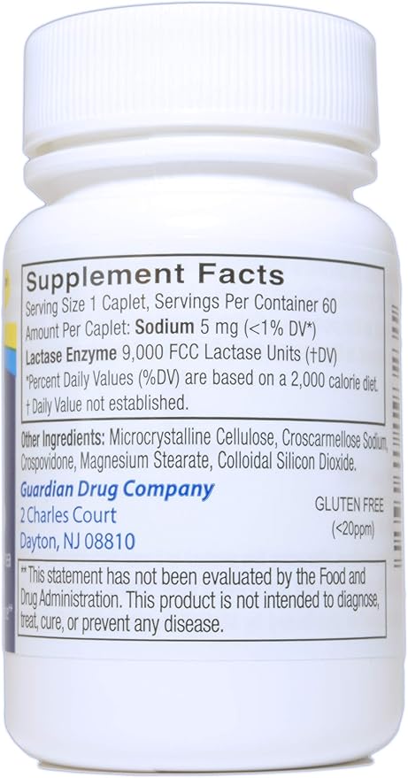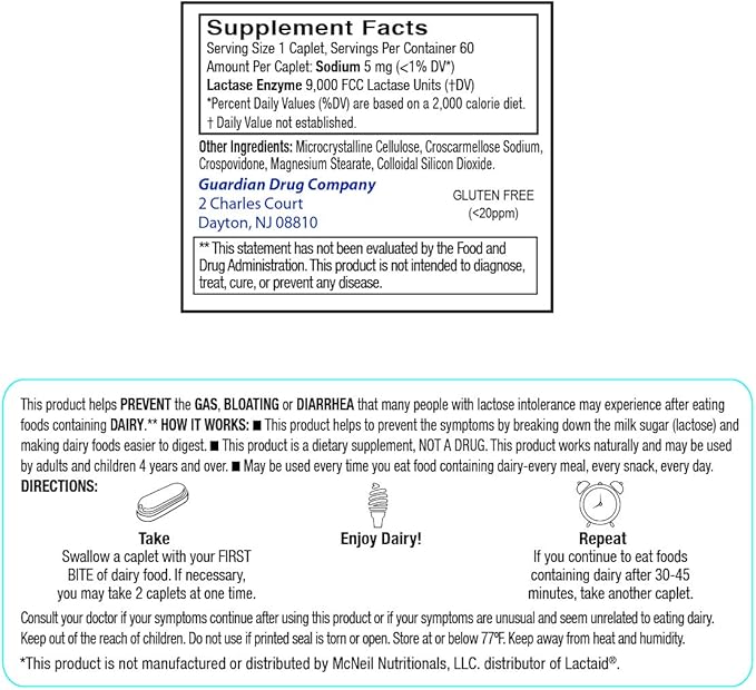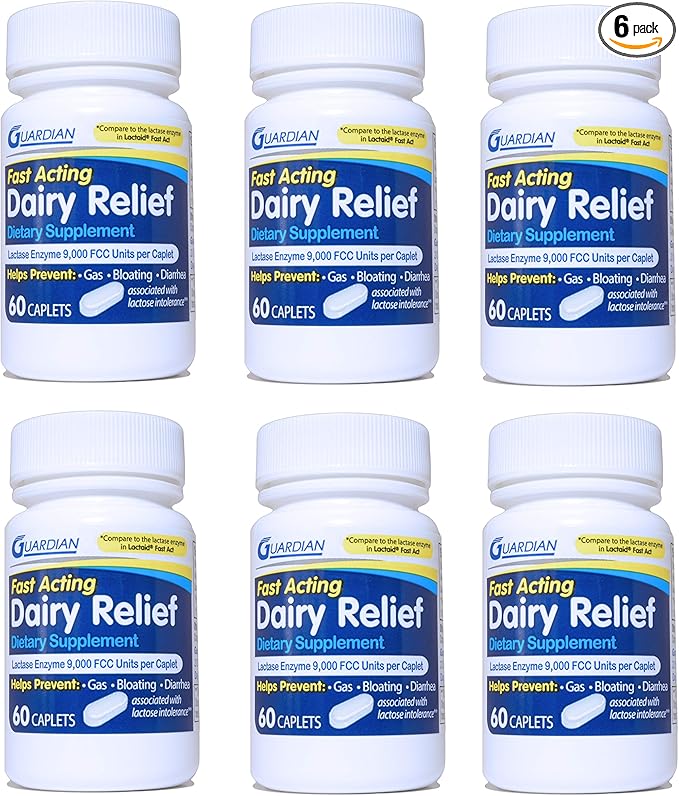 Guardian Dairy Relief Fast Acting Caplets, 9000 FCC, Lactose Intolerance Pills, Lactase Enzyme (360CT (Bottles))