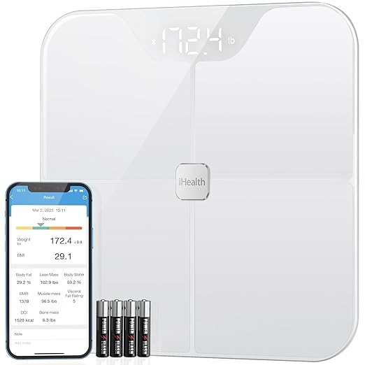 iHealth Nexus Smart Scale for Body Weight Bluetooth, Digital Bathroom Scale Body Fat and Muscle, Body Composition Monitor Health Analyzer for BMI Compatible for iOS & Android Accurate to 0.1lb-White