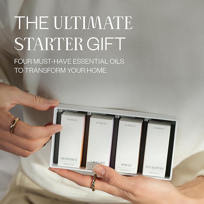 Vitruvi Essentials Kit, Essential Oil Starter Kit, 100% Pure Lavender, Eucalyptus, Grapefruit, Spruce, Essential Oil Set | Essential Oils for Diffusers Aromatherapy 4X 10ml (0.3 fl.oz), 4 Count