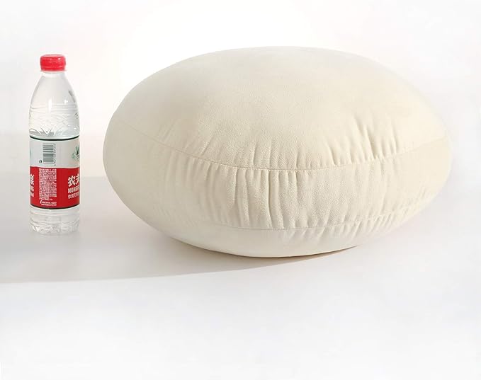 - Super Soft: 10% spandex knitted in the fabric to make sure the pillow have enough elasticity. The sanding treatment gives the round pillow delicate touching. Filled with 3 denier 51mm length feather-like polyester fiber, as thin as nature silk, brings both fluffy soft and heat-preserving. Makes your body completely relaxed as in soft cloud. Eco-friendly reactive dye. It is safe to both environment and human. No odor. Won't get worried when children play with it.