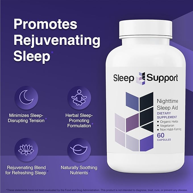 SleepSupport - Natural Sleep Aid for Adults to Help Promote Calm and Relaxation - Organic Sleep Supplement with Ashwagandha, Valerian Root, Magnesium, Melatonin, Glycine, L-Tryptophan - 60 Capsules