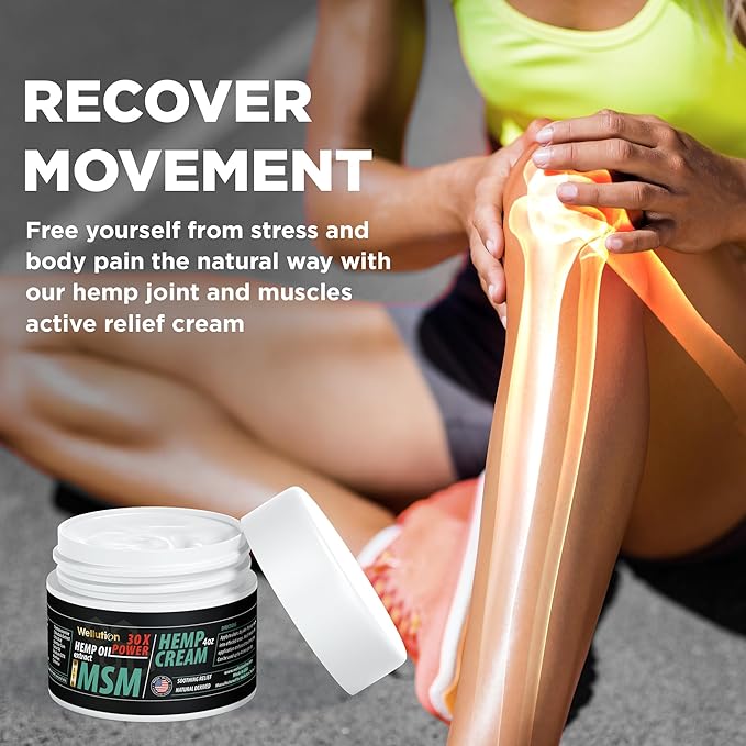 WELLUTION Hemp Cream - All-Natural Hemp Oil Extract - Extra Strength Massage Lotion with Arnica, Vitamins E & A - 4 oz