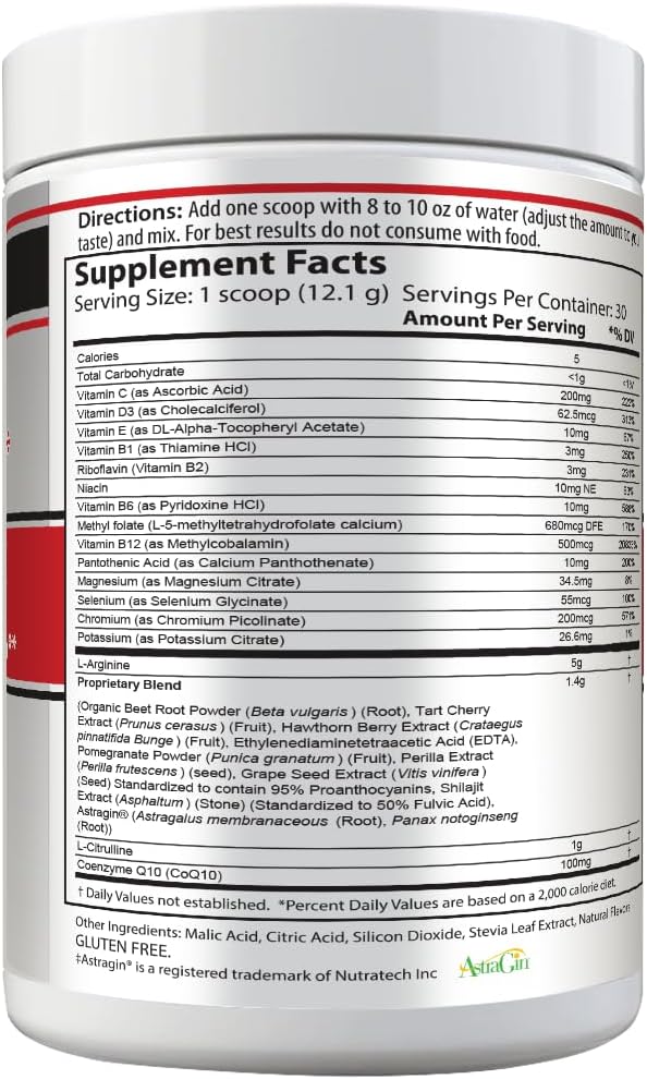 - Key Ingredients: Features premium high-quality L-Arginine, L-Citrulline, Organic Beet Root Powder, and Vitamins B12, C, D3, E for daily support.