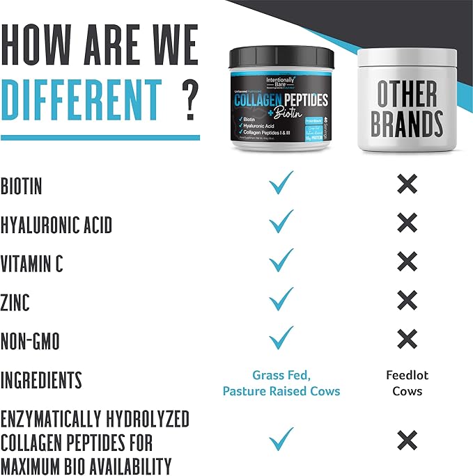 - MADE WITH INTENTION - Our Grass Fed Collagen Peptides Biotin contains no fillers, additives, or sulfates, ensuring pure quality. Manufactured in the USA and packaged in a BPA free container.