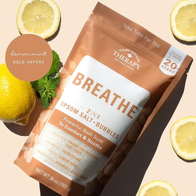 - THERAPEUTIC BATHING EXPERIENCE: Our Breathe Foaming Body Soak formula is perfect for when you are feeling under the weather and want to restore your body and mind. Take care of yourself by having a relaxing dip in the tub with long-lasting, insulating bubbles that keep the water warmer for longer. Calm your body and mind as you breathe in the rejuvenating aroma of Lemon, Peppermint and Menthol.