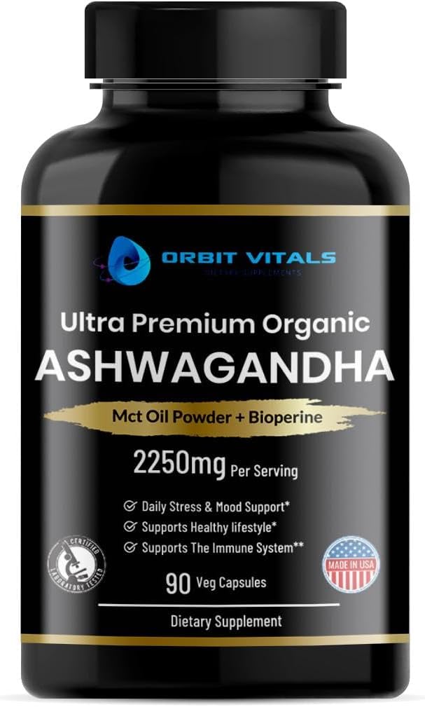 - HIGH POTENCY AND QUALITY: Each serving contains 2250 mg of high-quality vegan ashwagandha root with blend of MCT oil powder and black pepper, making it a high-strength supplement to deliver significant benefits. Orbit Vitals’ high potency Ashwagandha Root Powder Capsules are 100% organic, Non-GMO, Gluten-free & Sugar Free