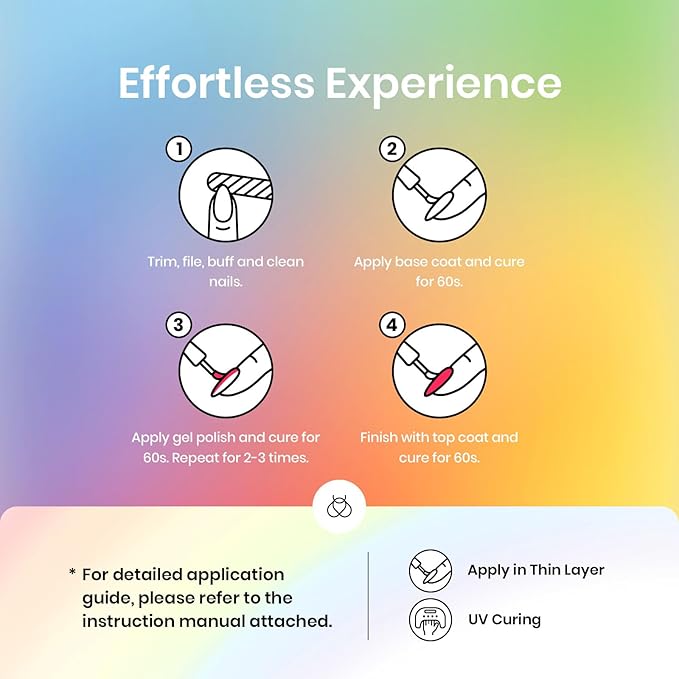 - Gel Polish Set: Spring Summer 20 essential colors all in one box! This “Rainbow” set includes every must-have color! An array of every shade you’ll need! Our color range will match any outfit you style your nails with! Only used for nails and Non-direct contact with the skin. Wash immediately if contact occurs. If you feel unwell, instantly stop using and seek medical attention. Keep the products away from pregnant individuals and children.