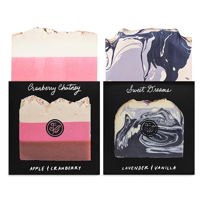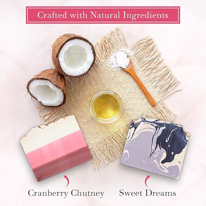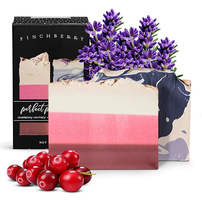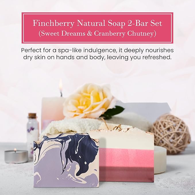 FinchBerry - 2 Bar Soap Set - Sweet Dreams & Cranberry Chutney - Moisturizing Hand & Body Soap with Shea Butter & Coconut Oil - Softens & Hydrates Dry Skin - Handmade, Organic Ingredients - 9 Oz