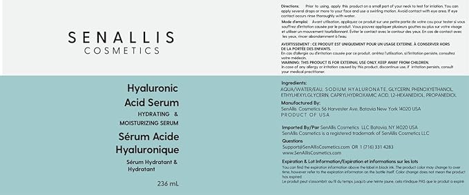 Hyaluronic Acid Serum 8 fl oz And 2 fl oz, Made From Pure Hyaluronic Acid, Anti Aging/Wrinkle, Ultra-Hydrating Moisturizer That Reduces Dry Skin Manufactured In USA