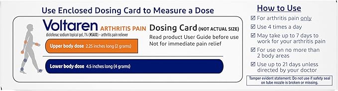 - Two 3.5 oz/100 g tubes of Voltaren Arthritis Pain Gel for Powerful Topical Arthritis Pain Relief- Easy flip cap that can be opened with your palm, fingers, or even with just one hand; packaging may vary