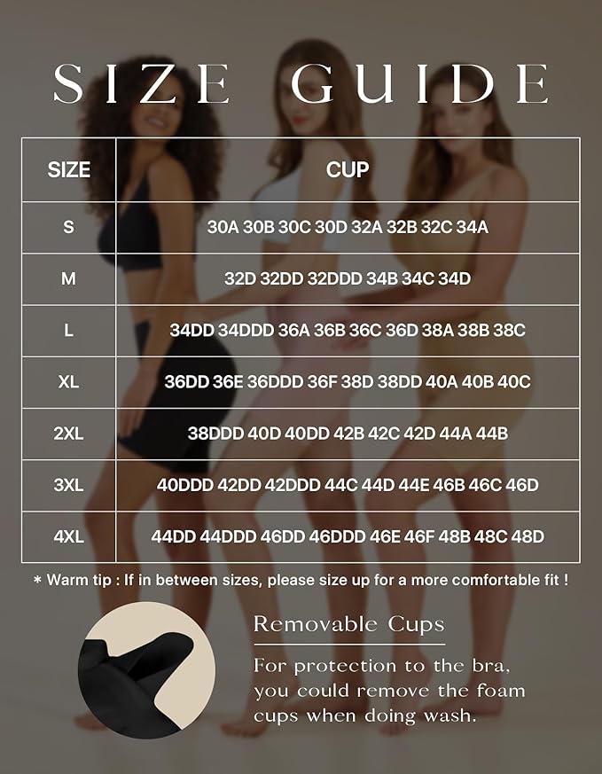 - 【COMFORTABLE & SUITABLE】This sports bra also benefits from elasticated underpants, removable padded everyday bras: our soft and comfortable ladies' sleep bras are padded with removable breathable material. A close-fitting compression fit, and a moderate elasticated lower bust strap provides moderate support.