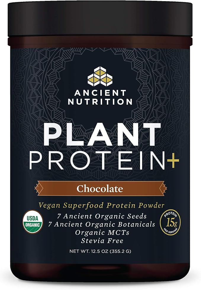 Ancient Nutrition Plant Based Protein Powder, Plant Protein+, Chocolate, Organic Vegan Superfoods Supplement, 15g Protein Per Serving, Gluten Free, Paleo Friendly 12 Serving