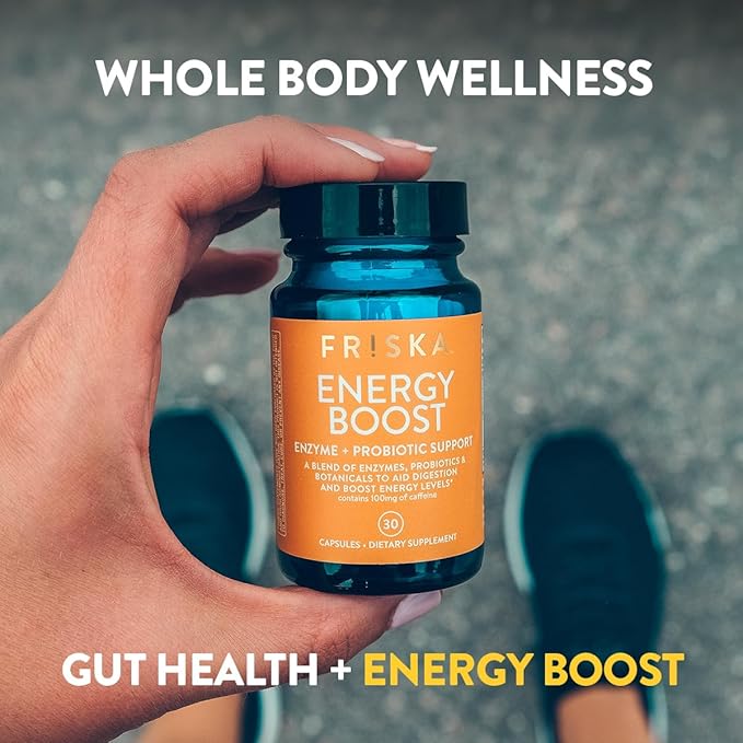 FRISKA Energy Boost Enzyme and Probiotics Supplement, Promotes Better Digestion and Energy for Men and Women, Gut Health, 30 Capsules
