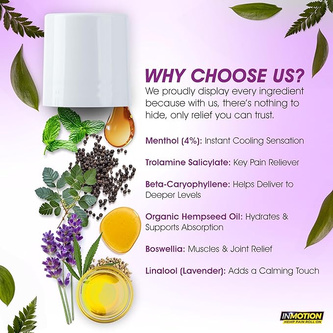 - WHAT ARE THEY HIDING? If you look at a lot of the hemp roll on pain relief products out there, you'll notice very few show their ingredient deck. Why is that? Look at our images and you'll see ours because we have nothing to hide!