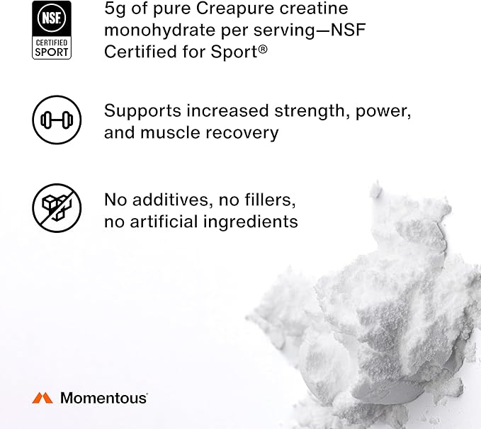 Momentous Creatine Monohydrate Powder - Creapure Creatine Powder - Supports Strength, Lean Muscle, & Recovery for Men & Women - NSF Certified for Sport - 5 g per Serving - 90 Servings