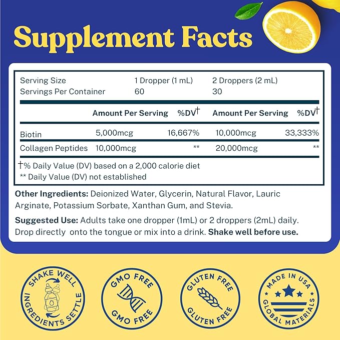 - HOW TO USE? We suggest one dropper (1ml) a day, either taken directly or mixed into a drink. Each bottle provides up to 20,000mcg type 1 and 3 hydrolyzed collagen peptides, and 10,000mcg biotin per 2ml.