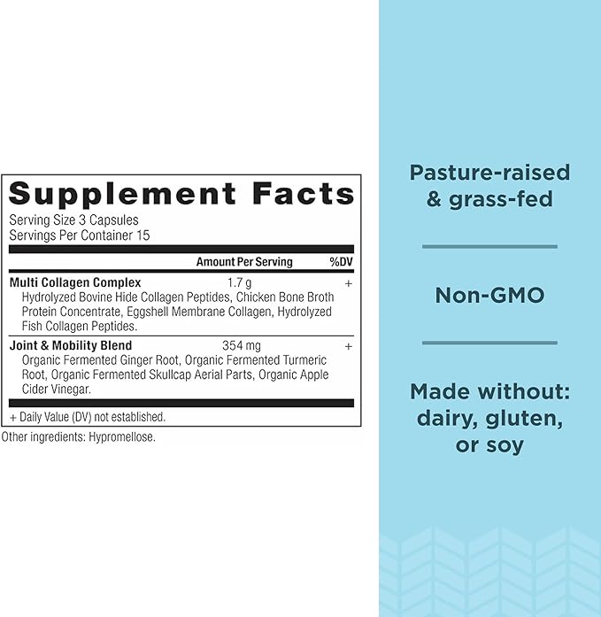 - You will receive (1) bottle of Multi Collagen Protein Capsules Joint + Mobility, 45 Count