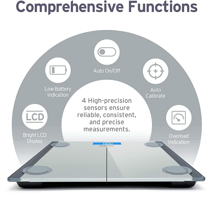 - Reliable Precision: The bathroom scale is equipped with 4 high-precision sensors that provide a 0.1 lb / 0.05 kg increments