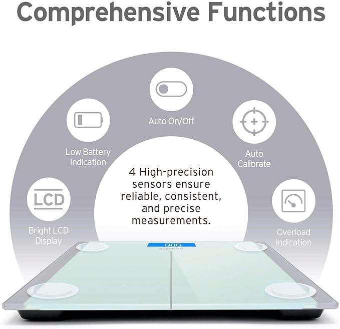 - Reliable Precision: The bathroom scale is equipped with 4 high-precision sensors that provide a 0.1 lb / 0.05 kg increments