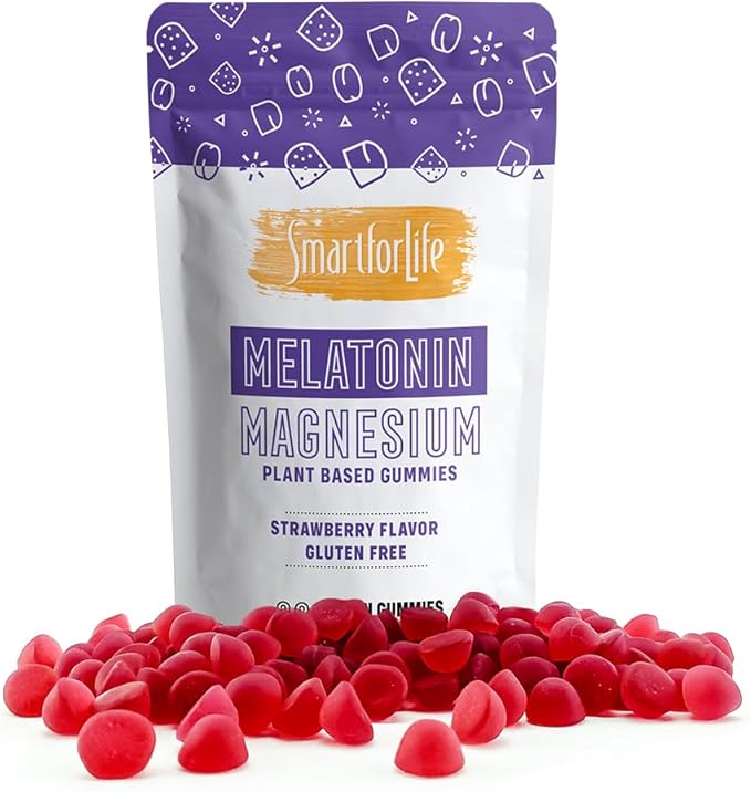 SMART FOR LIFE Melatonin Gummies 5mg W/Magnesium - 60 Count - Plant Based Vegan Melatonin Gummies - Strawberry Flavor Sleep Gummies - Heart & Bone Health Dietary Supplement - Adult Melatonin Gummies