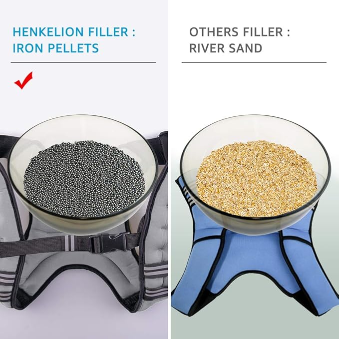 - IRON PELLETS & METAL ROCK - Henkelion weighted vest is filled with premium iron pellets and metal rock rather than using cheap river sand