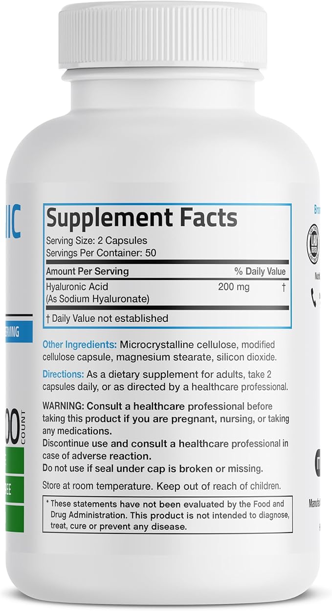 Bronson Hyaluronic Acid 200 MG High Potency Joint Health & Healthy Skin Support, Non-GMO, 100 Vegetarian Capsules