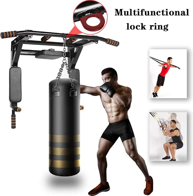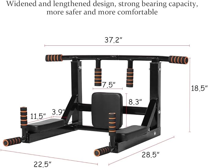 - ✅【Multifunctional Fitness Machine】:Wall mounted pull up bar can support many kinds of sport exercise like pull ups, chin ups, dip station, leg raises and boxing. Perfect for exercising your backs, shoulder, chest, arms, triceps, biceps, lats, and the front of your abs and provide comfort.