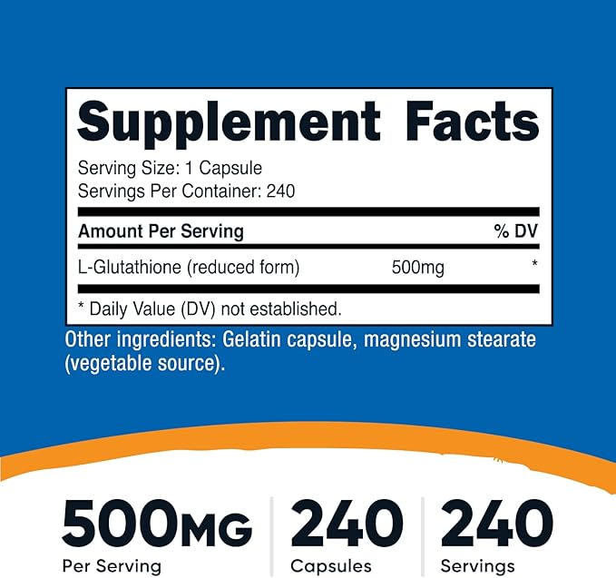 Nutricost Glutathione Capsules 500mg, 240 Capsules - Gluten Free, Non-GMO