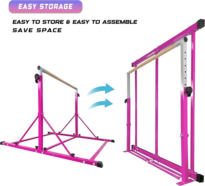 Gymnastic Bar for Kid and Teenage Ages 3-25, 5 FT / 6 FT Base Length, 5 FT / 6 FT Height, Gymnastic Kip Bar Horizontal Bar for Gymnast, Gymnastic Training Equipment for Home and Club Use
