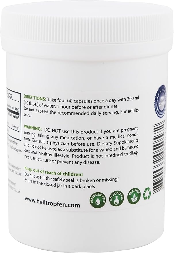 Zeolite 240 Capsules | Detox | Clinoptilolite | 3X Activated | Natural Mineral Dust Less-Than 2 µm | Heiltropfen®