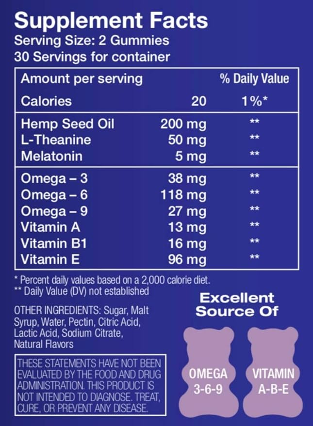 Hemp Sleep Gummies Triple Action | Promotes Healthy Sleep | Relaxes Body & Mind | Made in USA | 5mg Melatonin | 200mg Hemp | 10mg L-Theanine | 60 Organic Gummies