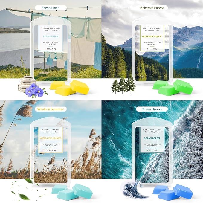 - What You Get: There are four packs of wax cubes in the package, and each pack of wax cubes has a different scent