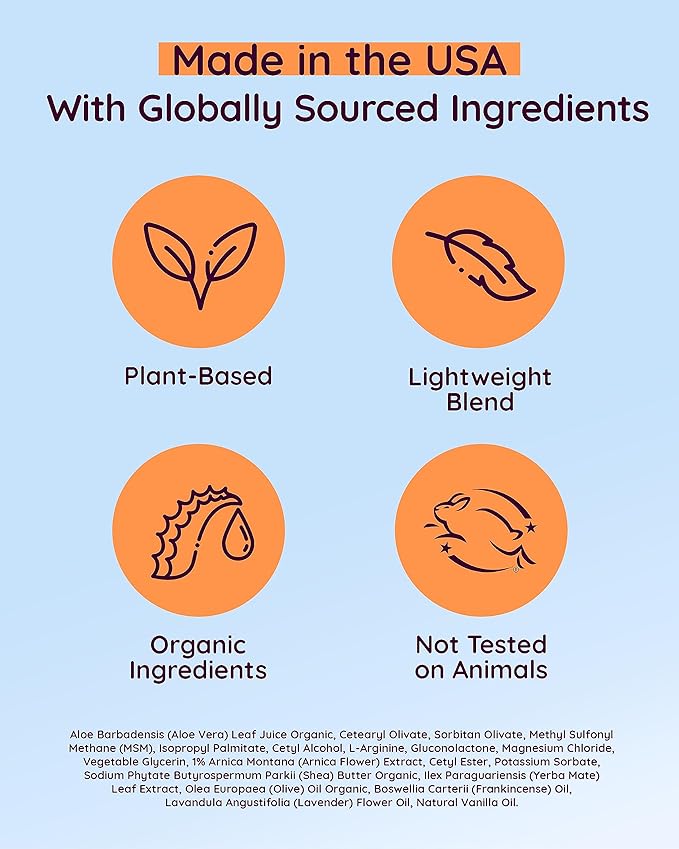 - Many magnesium MSM lotion formulas are sticky & don’t absorb well, making them less effective. After a lot of testing, we developed the perfect non-sticky, non-oily arnica magnesium cream.