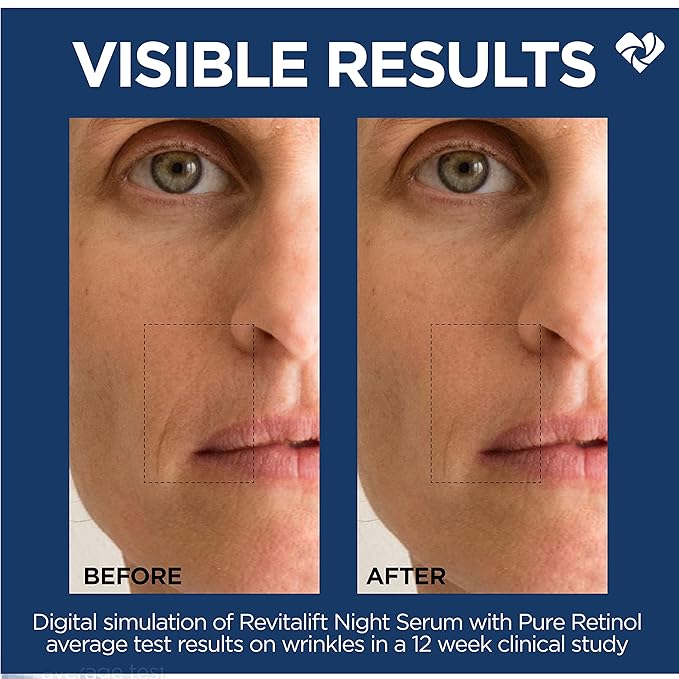 - Visibly Reduce Wrinkles: Revitalift Night Retinol Serum for Face with 0.3% Pure Retinol has an optimal concentration and is dermatologist-validated for visible results. Reduces wrinkles, even deep ones, while smoothing texture and moisturizing