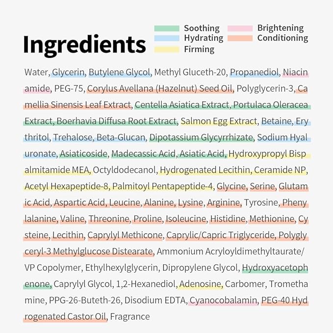- 11 Korean Ingredients for Total Care:Infused with 11 essential K-beauty ingredients including salmon extract, peptides, ceramide, and pink vitamins; this Korean cream helps hydrate, brighten, and improve skin texture in one easy step
