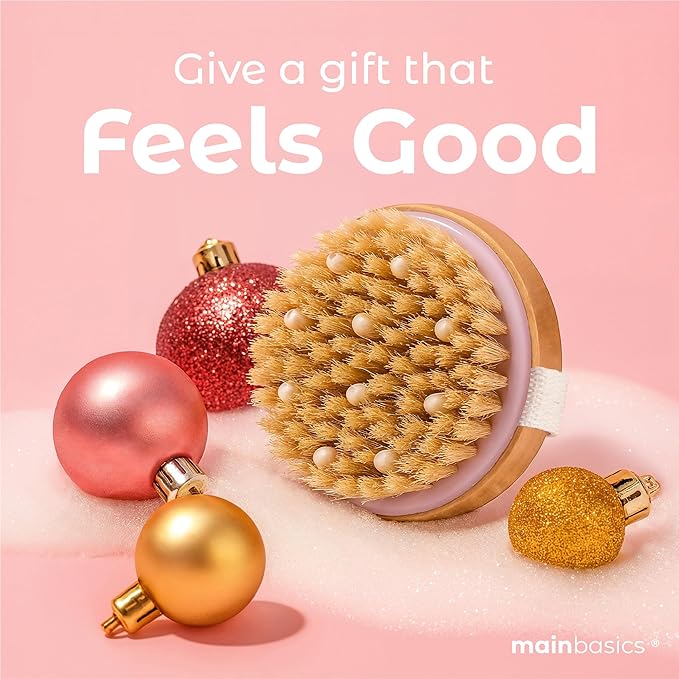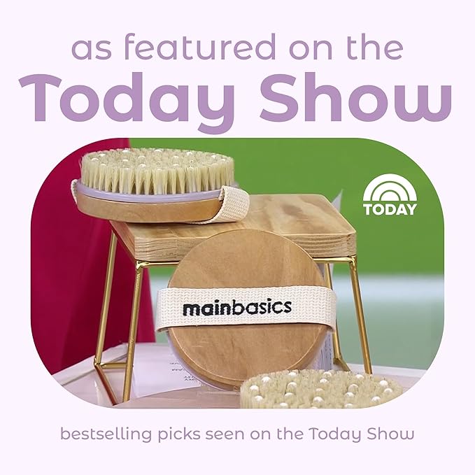 MainBasics Dry Brushing Body Brush for Lymphatic Drainage, Dry Skin, Cellulite, Blood Circulation with Exfoliating Natural Bristles and Massage Nodes for Flawless Skin