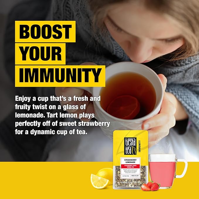 - STRAWBERRY LEMON HERBAL TEA: Indulge in the delightful essence of a freshly squeezed glass of lemonade with a playful fruity twist. The zesty lemon flavor harmonizes with the naturally sweet notes of strawberry and pineapple. Hibiscus and rosehip add a layer of complexity to this sweet-tart medley. Whether you prefer it hot or iced, savor the essence of summer with each delightful sip.
