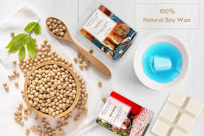 - SOY WAX MELTS – Made from natural soy wax, these hand poured wax tarts provide a clean burn and are easy to use. Wax melts does not need a wick flame to emit its fragrance which is a safer alternative to traditional candles, so you can enjoy without the worry of a flame