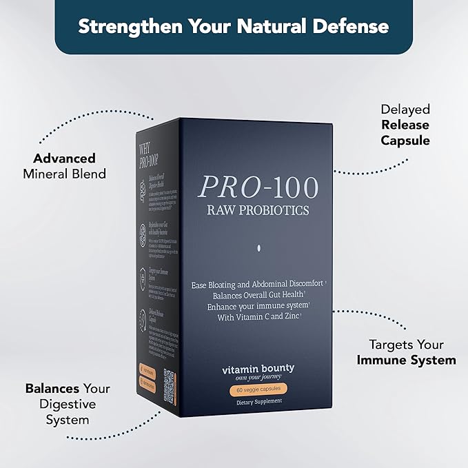 Vitamin Bounty Pro-100 Probiotic 100 Billion CFU - 13 Strains for Digestive Health & Immune Support - High Potency Probiotics for Women & Men - Delayed Release Capsules for Gut Health - 60 Count