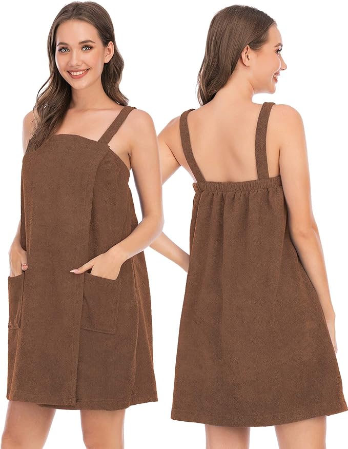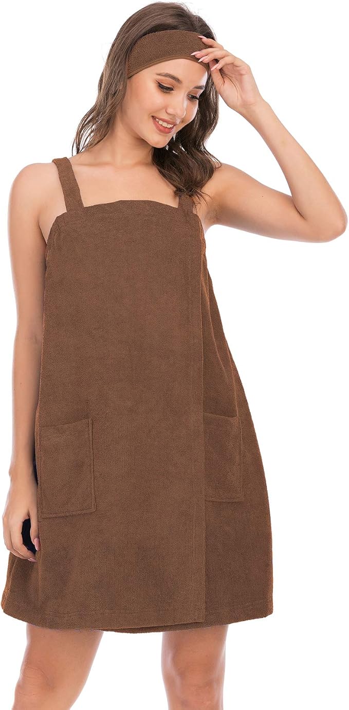 - ♦ VERSATILE: Our Bath Towel robe designed with two big pockets, convenient to hold phone, makeup and other belongings. The wrap matching with Facial Headband, when you facial care can hold your hair back to wash face or stop liquid from dripping into eyes and on face.