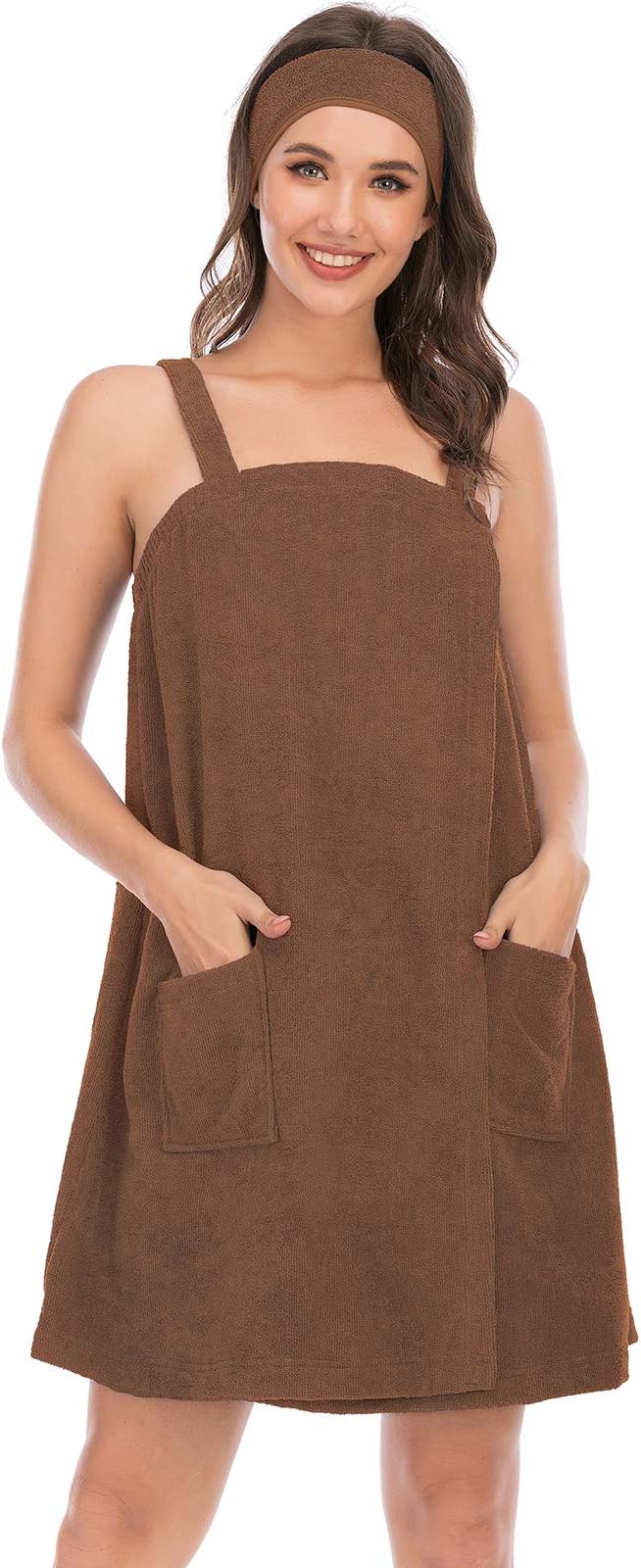 - ♦ VERSATILE: Our Bath Towel robe designed with two big pockets, convenient to hold phone, makeup and other belongings. The wrap matching with Facial Headband, when you facial care can hold your hair back to wash face or stop liquid from dripping into eyes and on face.
