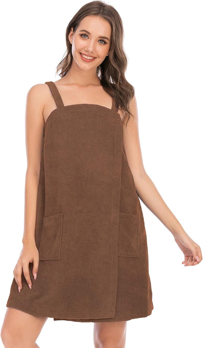 Veseacky Women Bath Wrap Towel for Womens Shower with Pocket Adjustable Spa Robe & Facial Headband