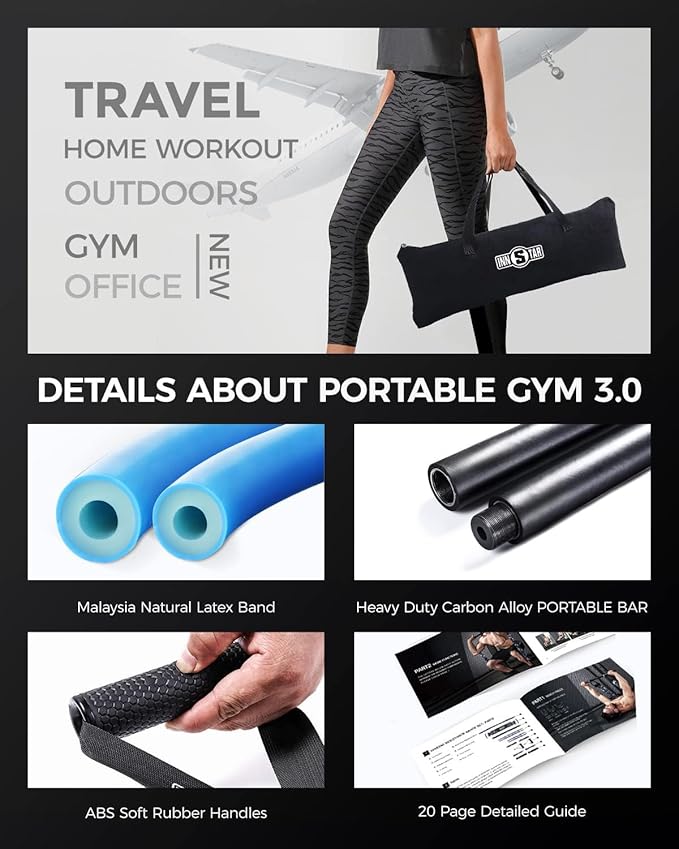 - ★PROFESSIONAL QUALITY FITNESS EQUIPMENT: High quality resistance band for heavy duty exercises. Nature latex material resistance band with 38” workout bar, 4*21” Squat bands for full body exercises. Also come with 2*door anchors, 2*foot straps, 2*ankle cuffs and 2*handles + 20 pages workout manual for your home exercise.